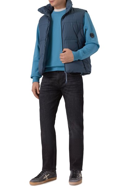 Для изготовления жилета Jeordie на утином пуху использовали гладкий твил из полиэстера и нейлона. Модель с боковыми карманами на молниях дополнили фирменной лентой с кнопкой на воротнике-стойке и патчем с эмблемой марки.