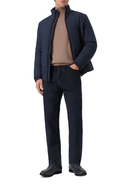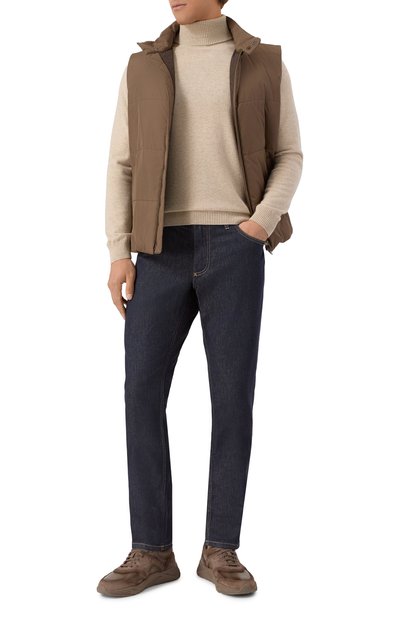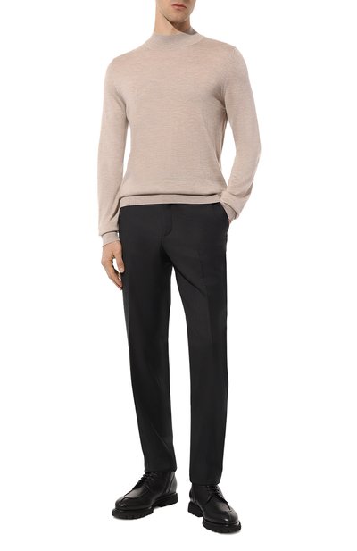 Водолазку изготовили из кашемирового трикотажа с добавлением шелка. Модель с отделкой в рубчик гармонично дополнит базовый гардероб.