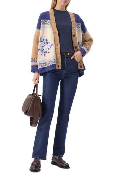 Кардиган Baobab с рифлеными манжетами, поясом и отделкой вдоль V-образной горловины связали из хлопковой пряжи. Oversize-модель с разноцветным жаккардовым узором пейсли застегивается пуговицами.