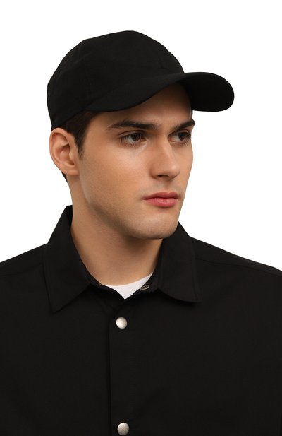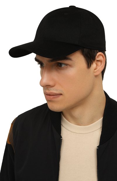 Бейсболку с трикотажной вставкой на затылке выполнили из ворсистого кашемира. Сзади изделие дополнили небольшой брендированной пластиной в тон.