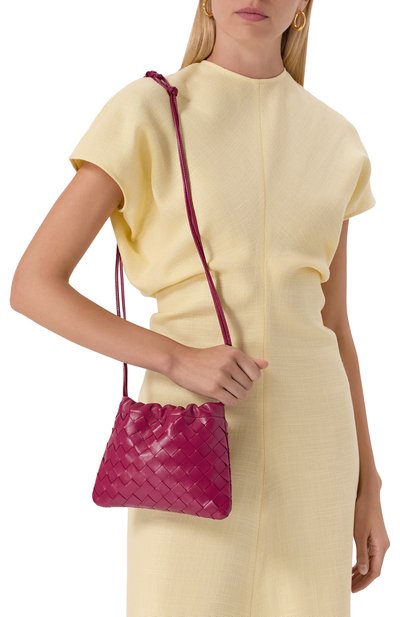 Сумку Tie Me с тисненым логотипом марки спереди выполнили из нубука. Мод ель с внутренними карманом на молнии и брендированным слотом дополнили двумя ручками, которые можно соединить перемычкой. В комплекте — съемные декоративный ремешок и плечевой ремень.