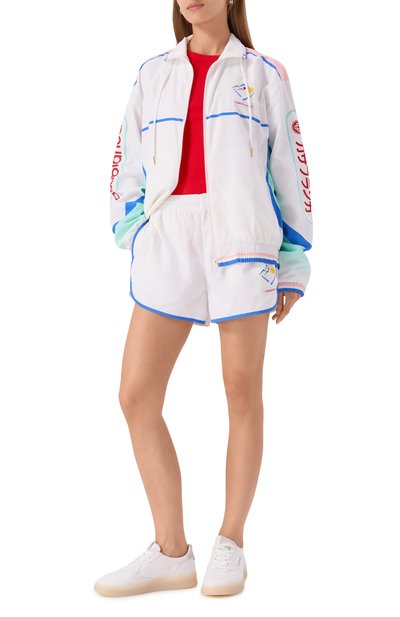 Широкие шорты с вышивкой Casa Way Mountain выполнили из футера на основе органического хлопка. Модель с поясом-кулиской дополнили боковыми карманами и задним накладным.