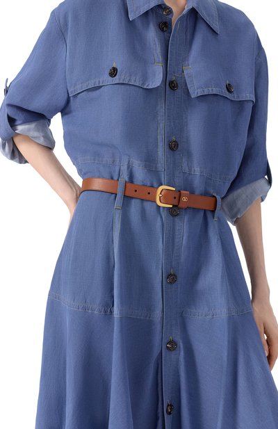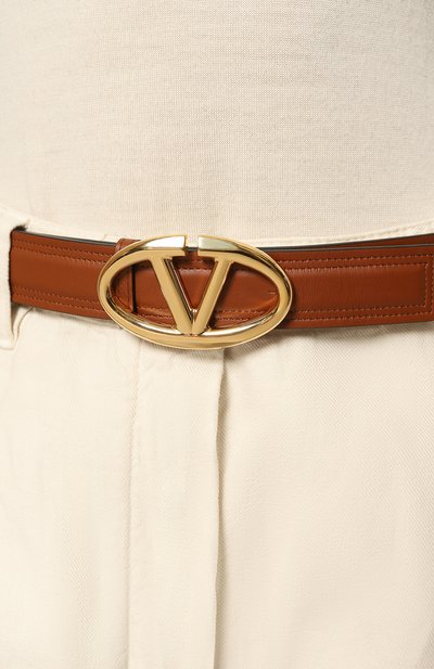 Ремень с пряжкой оттенка античной латуни изготовили из зернистой кожи. О принадлежности аксессуара марке говорит небольшая эмблема VLogo Signature на шлевке.