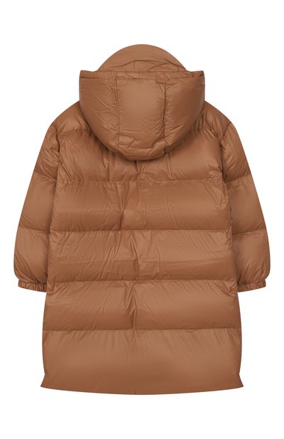 Стеганая куртка со съемным капюшоном и воротником-стойкой сшита из матового нейлона. Утепленная модель с накладными карманами по бокам и логотипом марки на груди застегивается молнией, прикрытой планкой с кнопками.