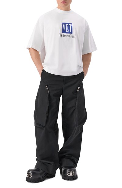 Для изготовления футболки силуэта oversize использовали джерси из чистого хлопка. Спереди модель с круглым вырезом декорировали крупным контрастным принтом Nano BB.