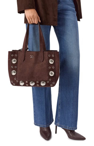 Сумку Jim Queen на встречной молнии сплели вручную из мелкозернистой кожи в технике intreccio ad inserto. Короткие ручки, переходящие в декоративные ремешки, украсили простроченными фирменными литерами V. Аксессуар с контрастным подкладом из канваса дополнили внутренним карманом. В комплекте – съемный регулируемый ремень.
