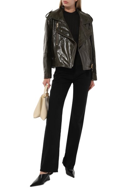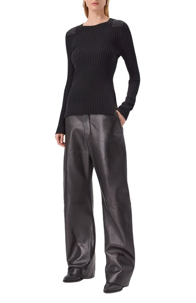 Облегающий пуловер Marabu связали узором в рубчик из тонкой шелковой пряжи с добавлением шерсти. По всей поверхности модель расшили мерцающими микропайетками.