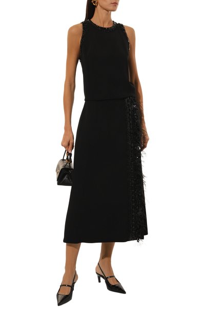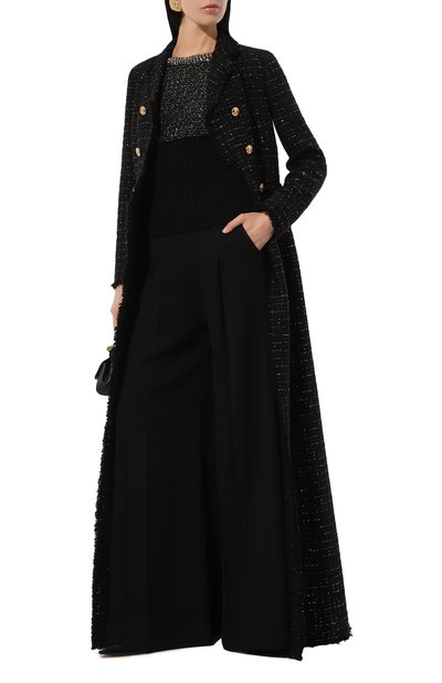 Топ с круглой горловиной выполнили из кашемирового трикотажа, усиленного шелком. Цветочный мотив Treillage вышили разноцветными шелковыми нитями спереди.