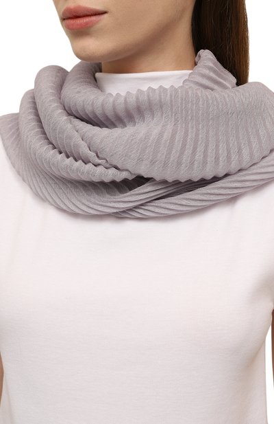Шарф Vesta с необработанными краями выполнили из микса хлопка и модала с добавлением кашемира. Аксессуар украсили принтом Doves, напоминающим негатив фотографии.