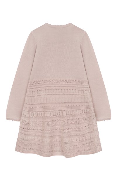 Приталенное платье с кокеткой и рукавами из тюля сшито из полиэстера. Лиф украшен кристальными эмблемами марки. Модель с подолом в складку застегивается потайной молнией сзади.