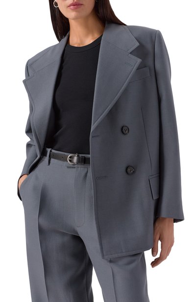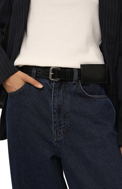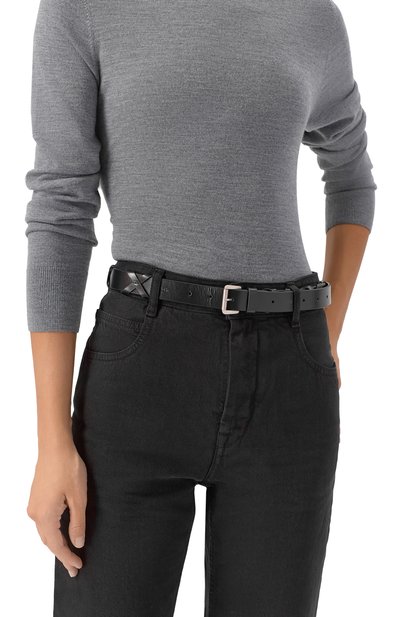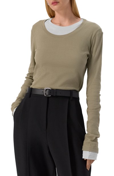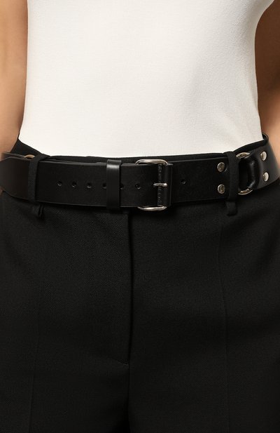 Для создания широкого ремня использовали мягкую матовую кожу. Аксессуар дополнили двумя металлическими пряжками-кольцами с эмалевым покрытием в тон.
