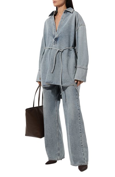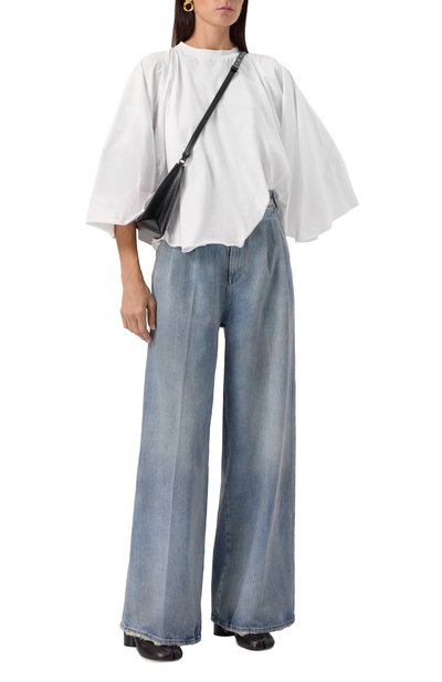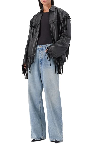 Джинсы The Fargo свободного кроя сшили из хлопкового денима с декоративными потертостями. Модель с высокой посадкой и заниженной линией шага дополнили пятью карманами.