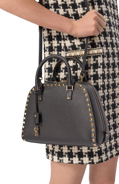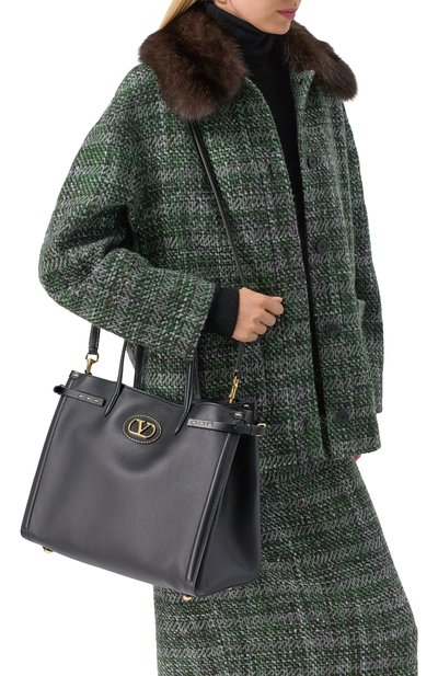 Сумку So Seau с регулируемой ручкой выполнили из гладкой кожи. Из такого же материала изготовили ленту с объемными кисточками по краям, затягивающую аксессуар. Принадлежность марки обозначили накладкой VLogo сбоку.