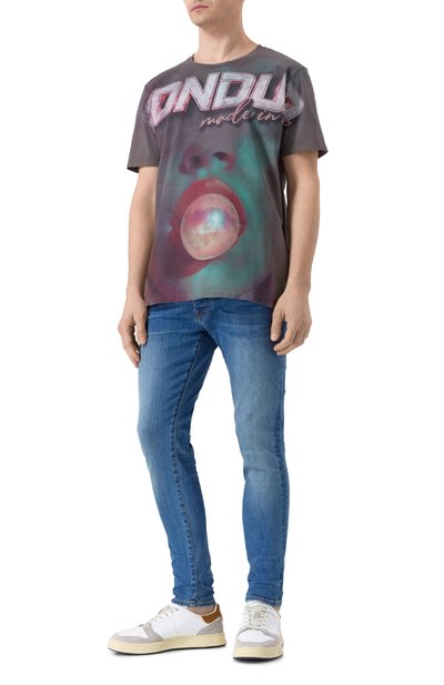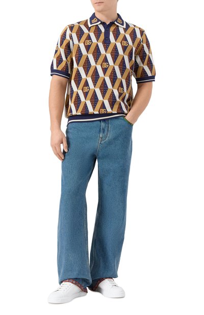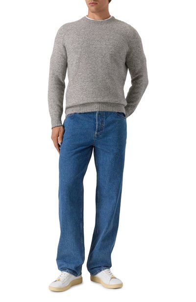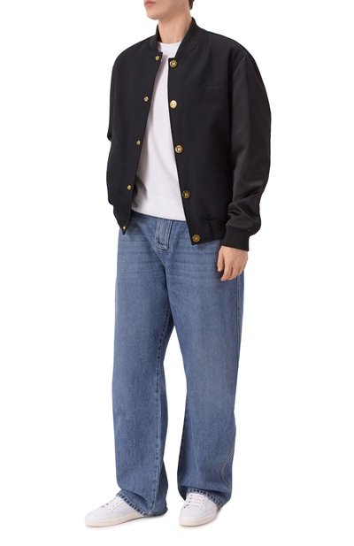 Джинсы кроя Regular fit сшили из хлопкового денима, подчеркнув пояс патчем с эмблемой Chez Valentino. Модель с отутюженными стрелками дополнили пятью карманами.