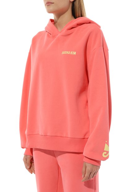 Костюм из линии Armani Sustainability Values выполнили из хлопка с добавлением эластана. Толстовку со стегаными передними полочками и двумя боковыми карманами украсили логотипом марки на левом рукаве, которому вторит фигурный пуллер. Брюки-карго с двумя парами карманов дополнили брендированной надписью спереди.