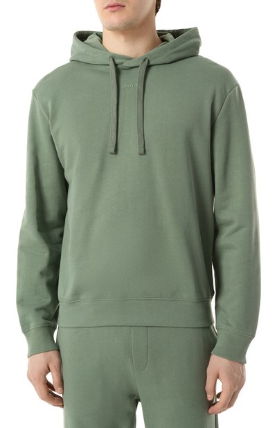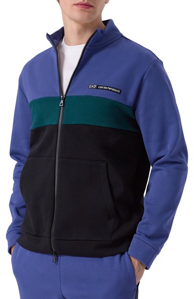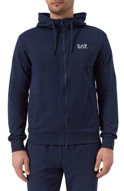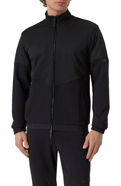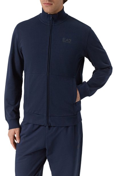 Спортивный костюм выполнили из эластичного влаго- и терморегулирующего материала Natural VENTUS7 на основе полиэстера, органического хлопка и модала. Толстовку с накладными карманами на молниях и джоггеры с поясом-кулиской и боковыми карманами декорировали логотипами марки.