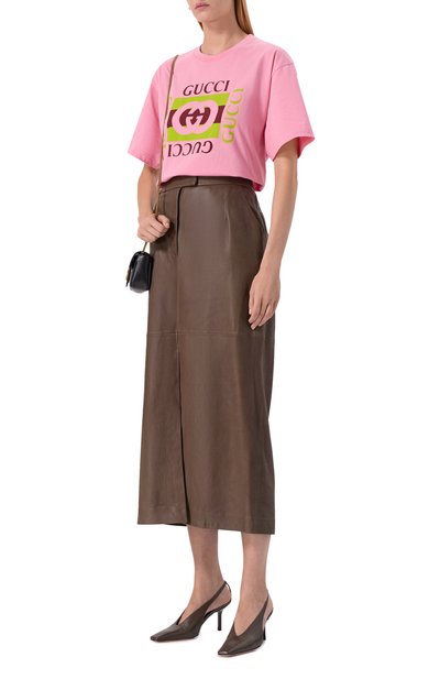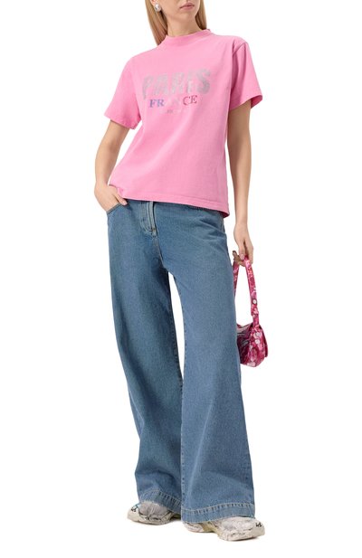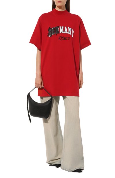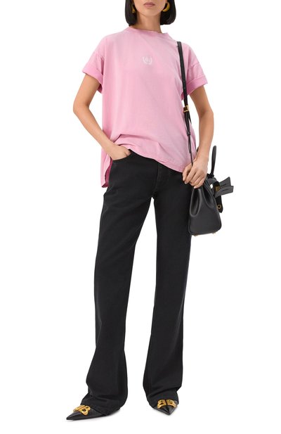 Oversize-футболку украсили контрастной аппликацией VIP спереди и логотипом на рукаве. Модель с рифленой горловиной выполнили из хлопкового джерси.