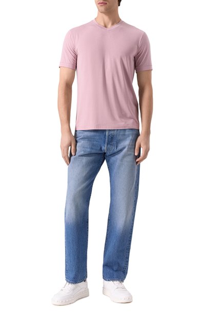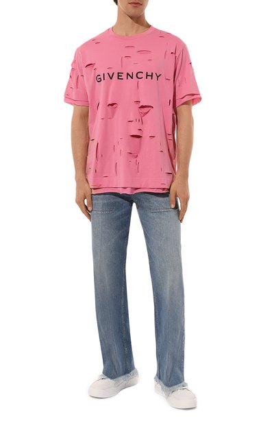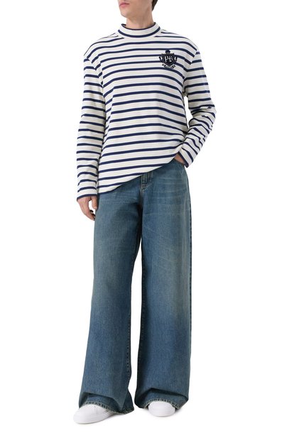Джинсы кроя Loose fit выполнили из хлопкового денима. Пояс модели сзади дополнили брендированным патчем, а края брючин и четырех из пяти карманов подчеркнули принтованным кантом.