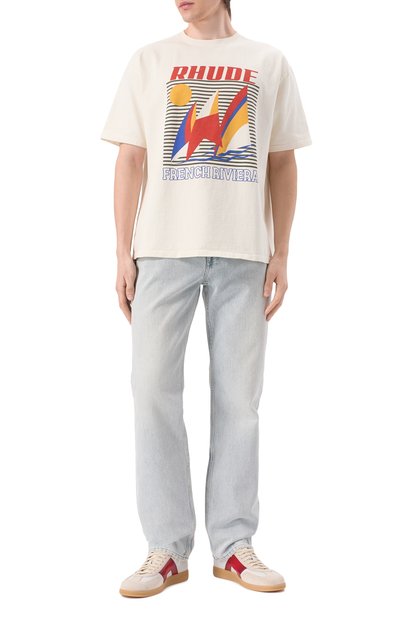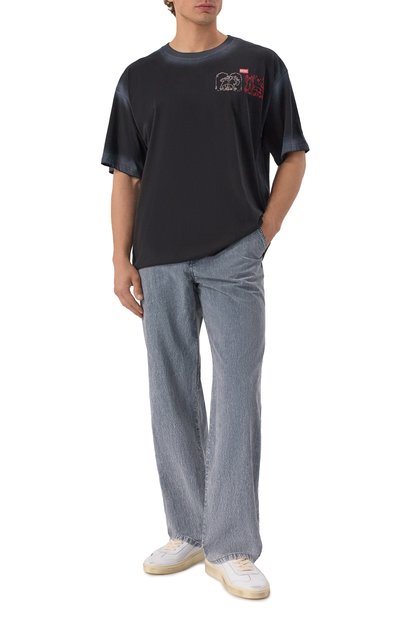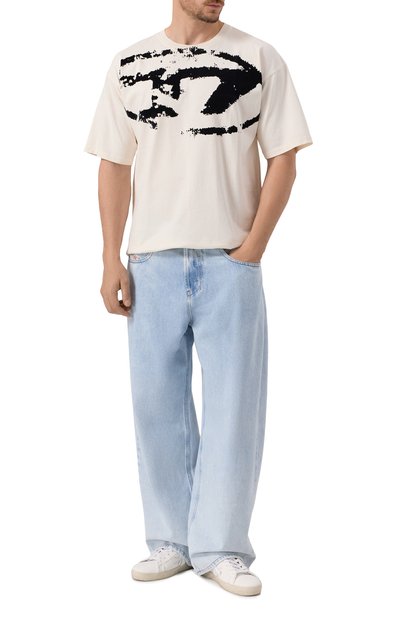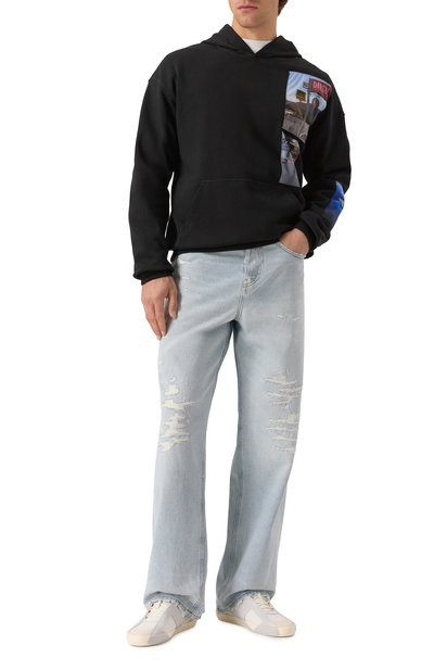 Выбеленные джинсы 1980 D-Eeper со средней посадкой выполнили из неэластичного хлопка. Брюки с брендированной нашивкой на самом маленьком из пяти карманов украсили фирменным жакроном сзади.