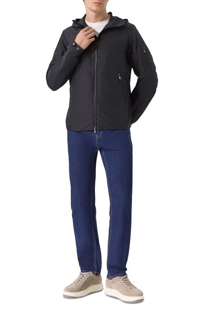 Куртку J-Wilson с потайной кулиской по низу и двумя боковыми карманами выполнили из переработанного нейлонового таслана, окрашенного под деним. Левый рукав изделия украсили силиконовой литерой D, форму которой повторяют пуллеры на встречной молнии.