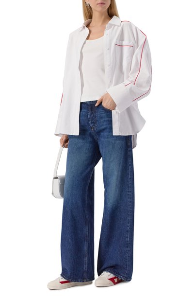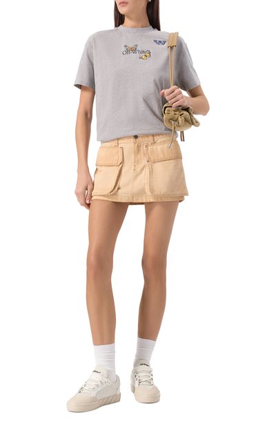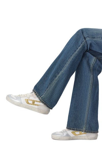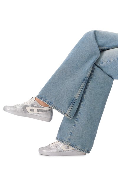 Кеды S-Dakota с перфорацией на союзке выполнили из замши, гладкой матовой и металлизированной кожи. Пару с брендированным задником декорировали патчем с логотипом на язычке и крупной эмблемой из стразов сбоку.