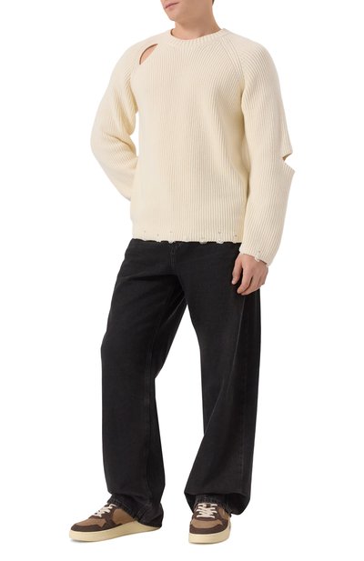Кеды SK8 Deluxe с перфорацией на союзке выполнили из гладкой кожи, бархатистой замши и текстиля с камуфляжным принтом. Модель с потертостями декорировали фирменной наладкой и логотипом на заднике, названием и яркими стежками сбоку, а также брендированным патчем на язычке.