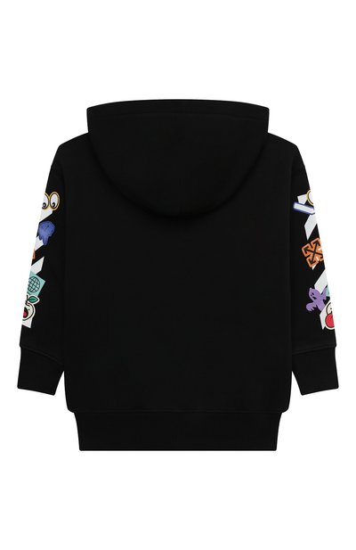 Для изготовления худи с нерегулируемым капюшоном использовали хлопковый трикотаж. Спереди модель с манжетами и поясом в рубчик декорировали изображением медвежонка Teddy Bear на фоне крупного логотипа в стиле граффити.