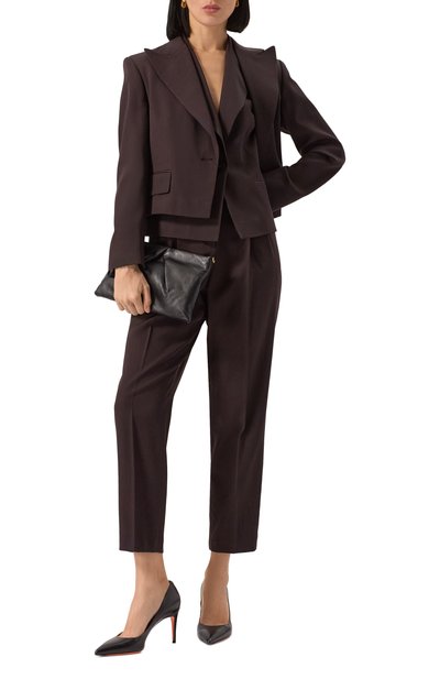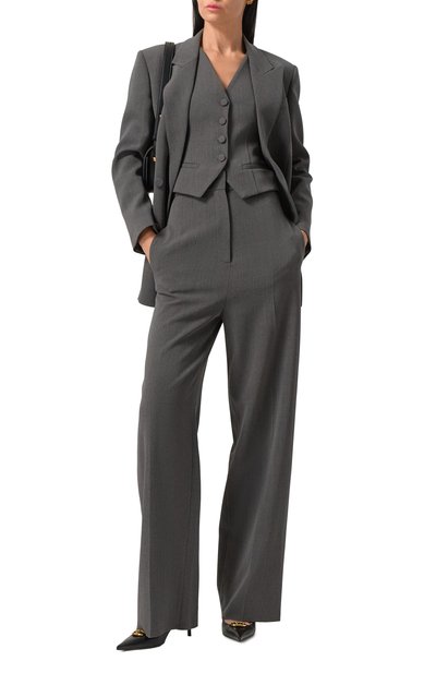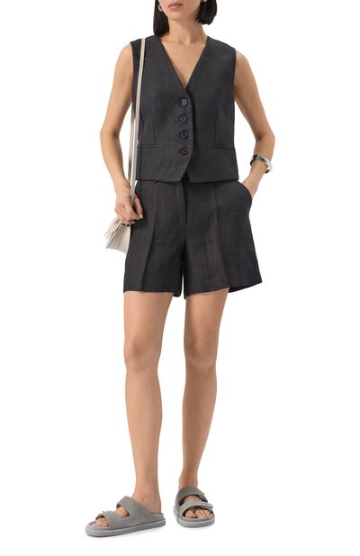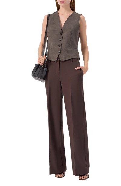 Жилет Liliuxy свободного кроя сшит из эластичной шерсти. Модель с V-образным вырезом, широкими ремешками и двумя карманами с клапанами застегивается золотистыми пуговицами.