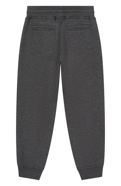 Для создания джоггеров с четырьмя карманами использовали меланжевый хлопковый футер. Модель с широким эластичным поясом-кулиской украсили вышитой эмблемой Solomeo на брючине.