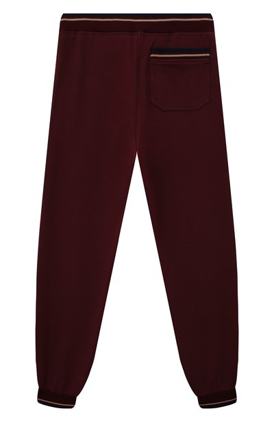Джоггеры из коллекции Travelwear сшили из хлопкового трикотажа френч терри оттенка Burgundy. Сквозь эластичный пояс-кулиску продели контрастный шнур, с которым перекликается эмблема Solomeo слева. Модель с манжетами в тонкий рубчик дополнили четырьмя карманами.