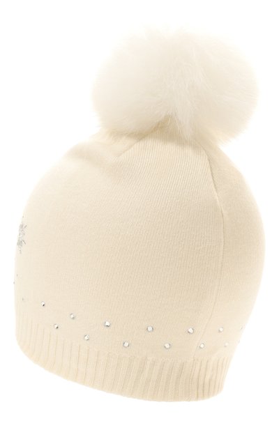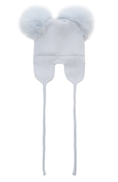 Шапку с наушниками, дополненными завязками, связали из шерстяной пряжи. Спереди модель с помпоном в тон украсили контрастной аппликацией в виде ежика.