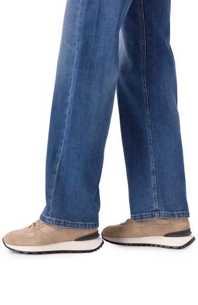 Кеды на широкой подошве, сшитые из гладкой кожи, утеплили густой овчиной. Нашивку на язычке и фирменную накладку double-buckle сбоку украсили фольгированными логотипами.