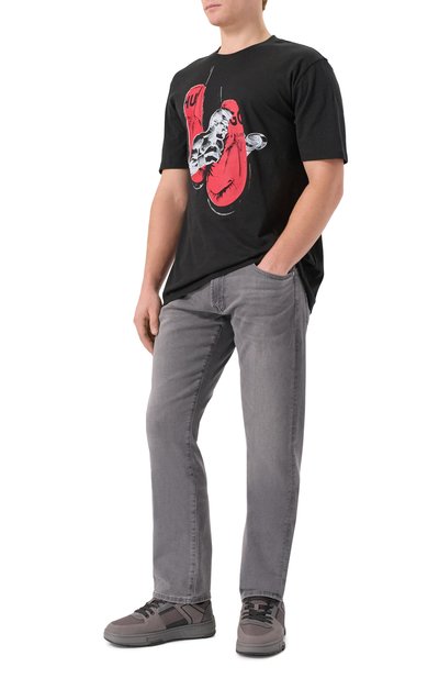 Футболку Denrith украсили контрастной вышивкой, дополненной логотипом. Модель с неглубокой круглой горловиной, продублированной кантом, выполнили из хлопкового джерси.
