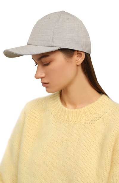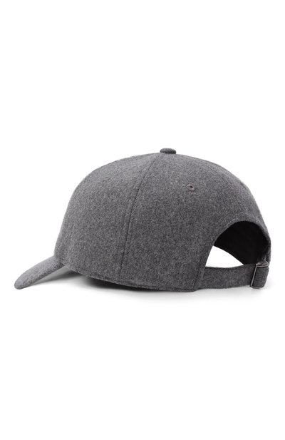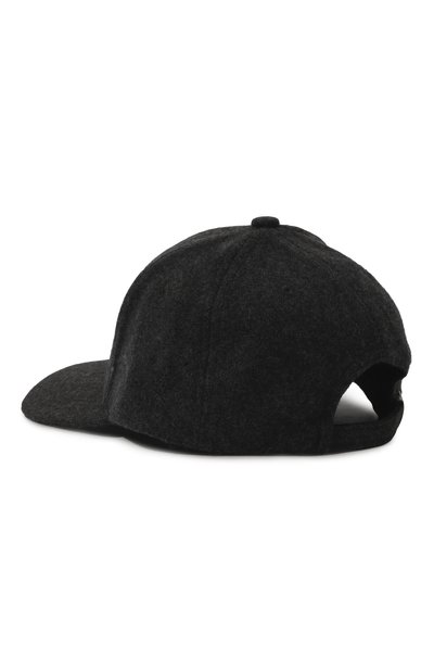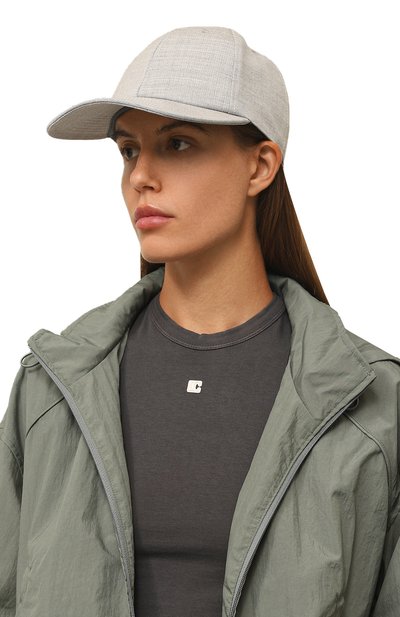 Бейсболку с изогнутым козырьком сшили из фактурного микса полиэстера и шерсти. Аксессуар с люверсами и брендированным ремешком-велкро украсили спереди вышитой эмблемой марки.