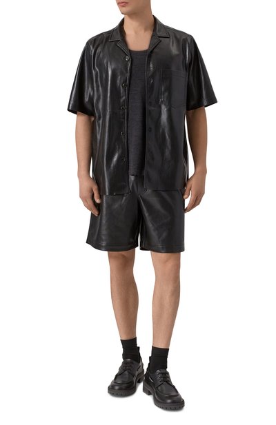 Пенни-лоферы на широкой подошве выполнили из гладкой лакированной кожи. Округлый приподнятый мыс модели подчеркнули рельефным швом, а союз ку изделия дополнили перемычкой с прорезью.