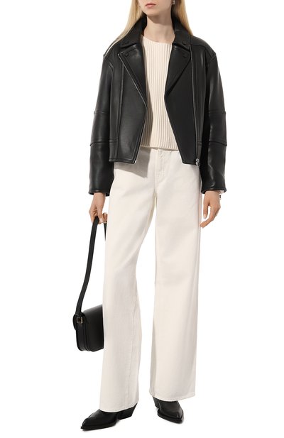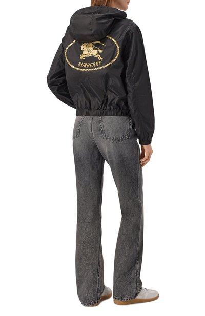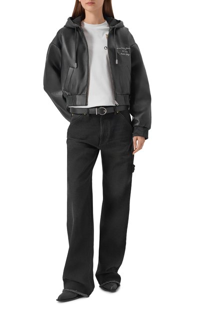 Укороченный oversize-бомбер с двумя втачными карманами по бокам и регулируемым капюшоном выполнили из кожи. Утепленную синтепоном куртку на хлопковом подкладе украсили брендированной вышивкой спереди.
