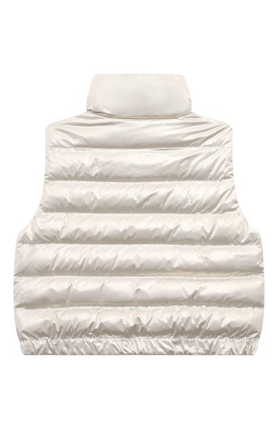 Утепленный стеганый жилет со съемным капюшоном и двумя накладными карманами с клапанами сшили из нейлона с фирменным паттерном. Высокие боковые разрезы застегиваются кнопками, а сама удлиненная модель – встречной молнией.