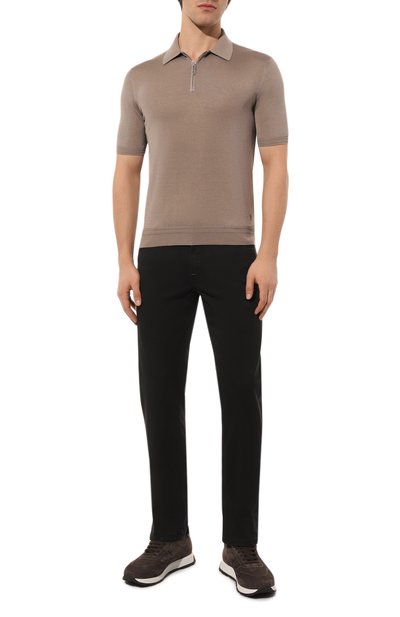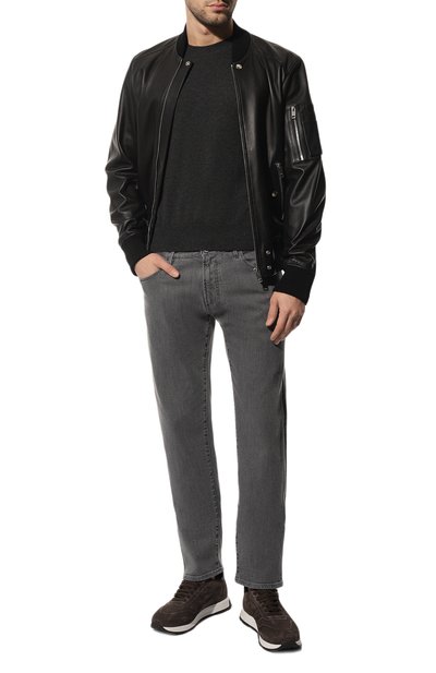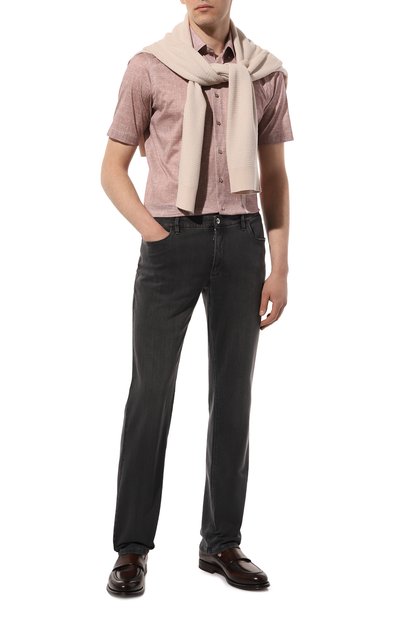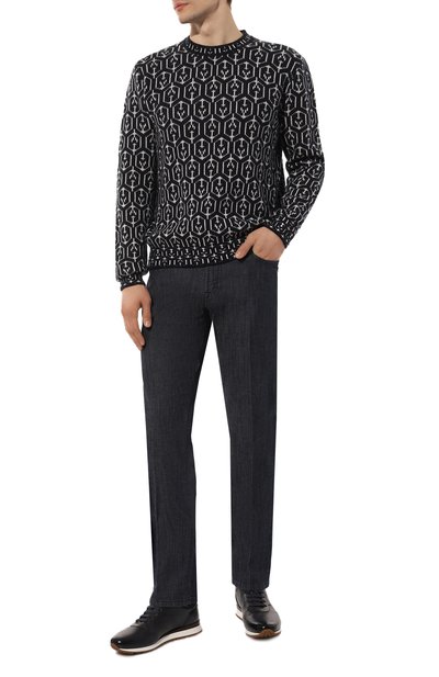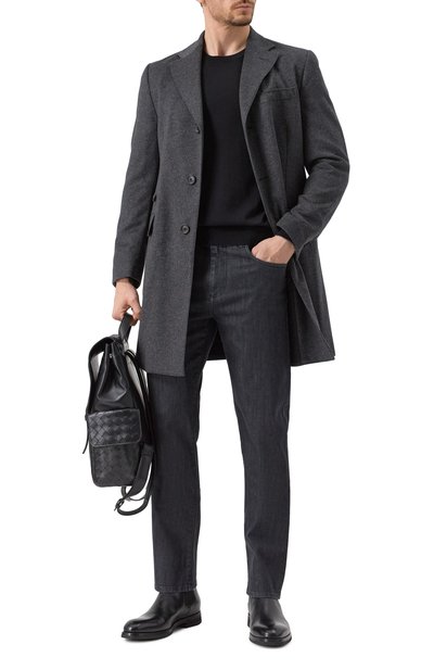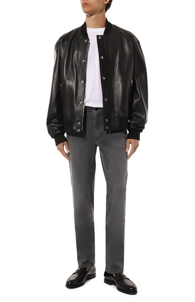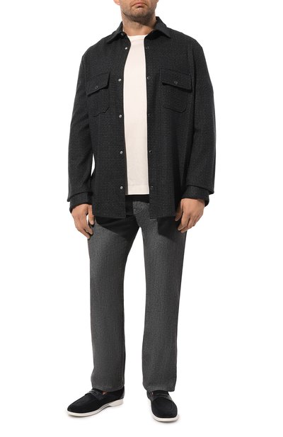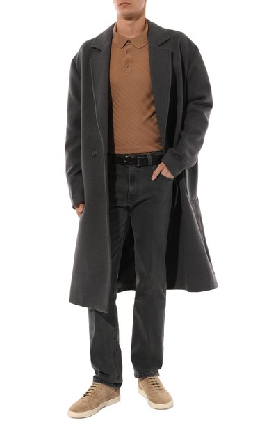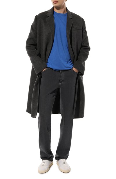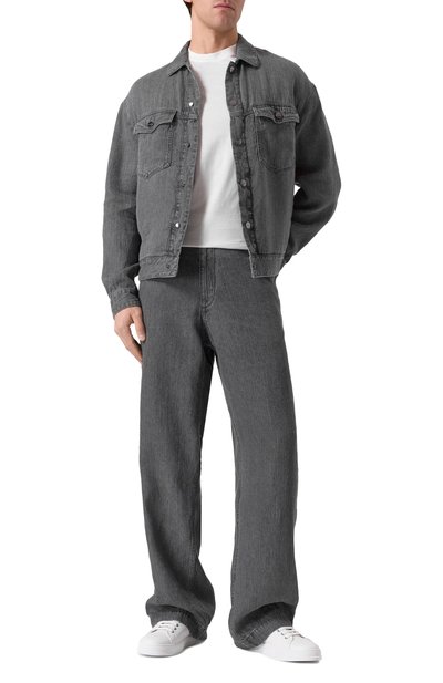 Широкие джинсы с пятью карманами выполнили из стрейчевого денима на основе органического хлопка с добавлением модала. На поясе сзади модель декорировали брендированным патчем из овечьей кожи.