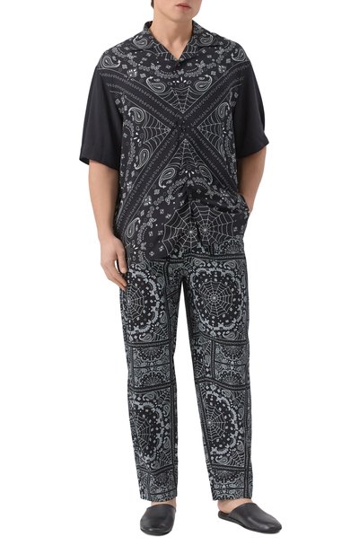 Для пошива широких домашних брюк использовали стрейчевое джерси на основе модала. Модель с брендированным поясом-резинкой дополнили боковыми карманами.