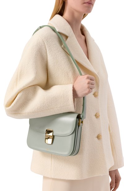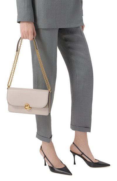 Сумку-тоут Double Beat с логотипом марки на клапане с магнитной застежкой выполнили из зернистой кожи. Модель с двумя внутренними карманами дополнили еще одним внешним, который можно снять. В комплекте — отстегивающийся ремешок-цепочка.