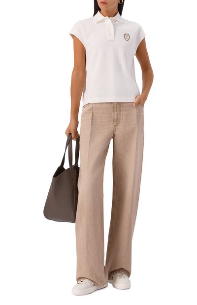 Поло Tool с акцентными плечами и контрастными швами выполнили из эластичного полиамида. Модель со вставкой в полоску украсили эмблемой бренда спереди, в тон которой выполнили круги на рукавах.