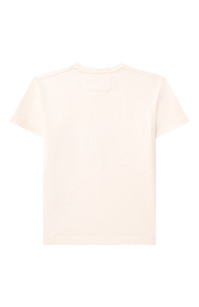 Для изготовления футболки с круглым вырезом использовали джерси из чистого хлопка. Спереди модель декорировали принтом с логотипом и надписью, словно нанесенной аэрозольной краской.