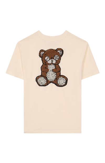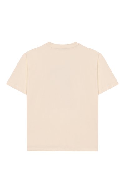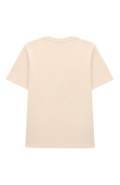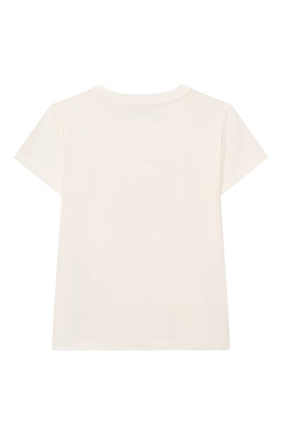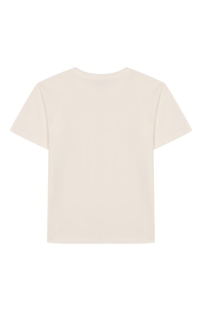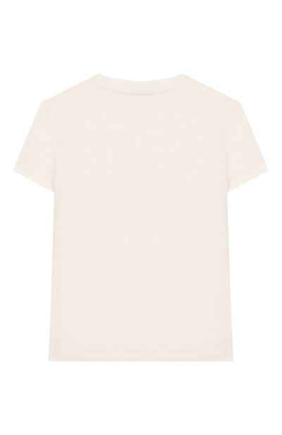Футболку с круглой горловиной выполнили из хлопкового джерси. Спереди модель украсили вышитым логотипом марки, подчеркнув его бусинами двух оттенков.