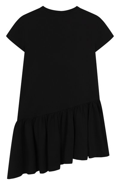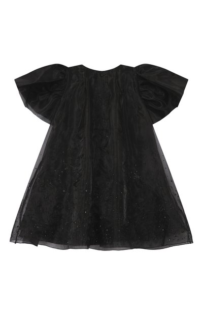 Платье с рукавами-фонариками и широкой оборкой на расклешенном подоле с пышным контрастным подъюбником выполнили из бархата. Модель с бантом на лифе застегивается потайной молнией на спинке.