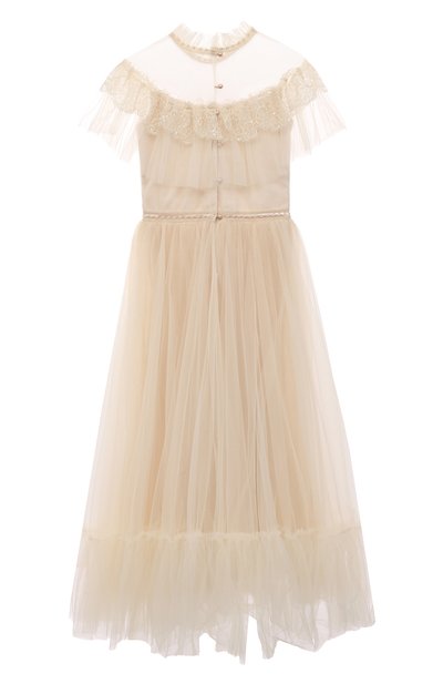 Платье с пуговицами сзади выполнили из тюля, а для подклада использовали хлопок. Модель с кружевной отделкой на лифе и линии талии представлена эксклюзивно в ЦУМе.