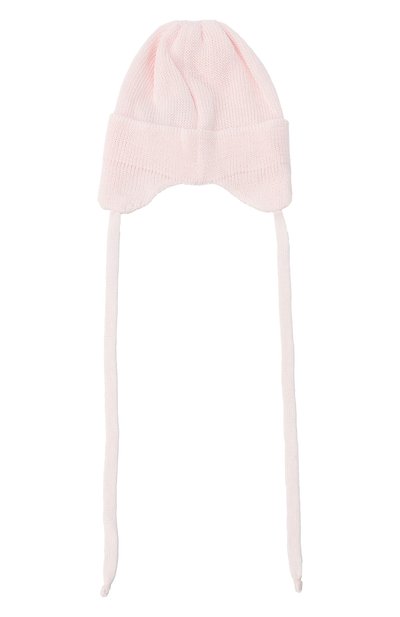 Шапку с помпоном связали из шерсти с добавлением кашемира. Кайму по краю и наушники, дополненные завязками, выполнили в рубчик.