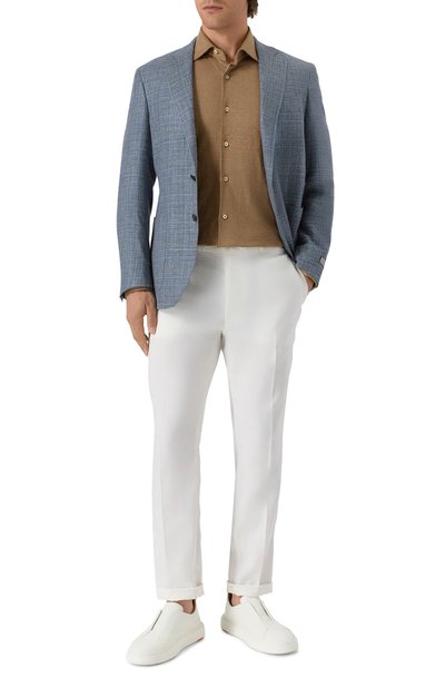 Обхват груди 122 см, обхват талии 112 см, длина рукава от плечевого шва 67 см, длина изделия по спинке 80 см. Крой Slim fit. Манжеты на пуговицах.