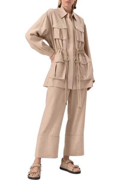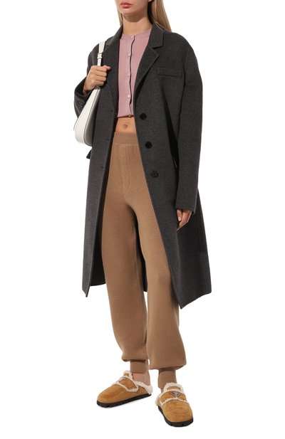 Джоггеры из линии New Normal сшили из хлопкового вельвета с добавлением кашемира и полиамида. Один из четырех карманов украсили эмблемой марки. Брюки свободного кроя дополнили замшевыми манжетами на кнопках.