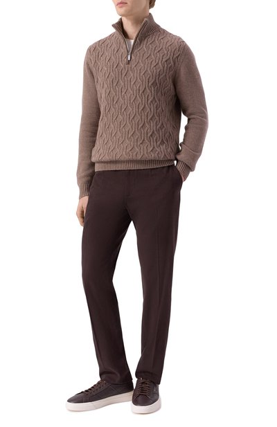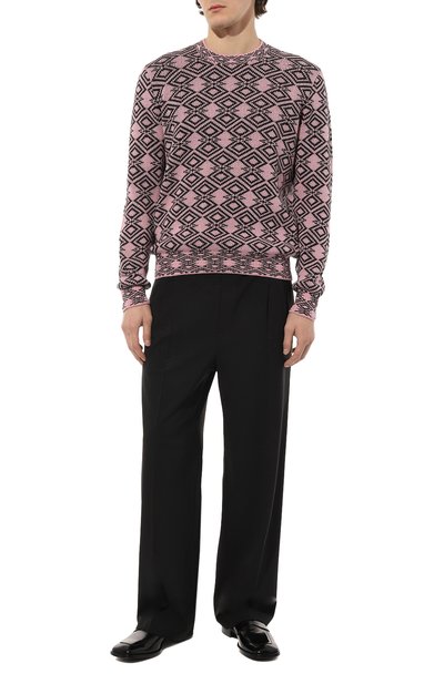 Свитер с геометрическим узором станет основой комфортного повседневного образа. Модель с манжетами, поясом и круглой горловиной в рубчик связали из чистой шерсти.
