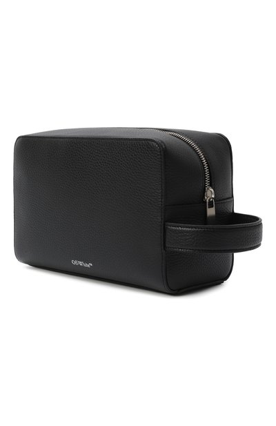 Для изготовления несессера на молнии использовали жатую мелкозернистую кожу. Спереди и сзади аксессуар декорировали фирменными скобами из патинированного серебра 925-й пробы.